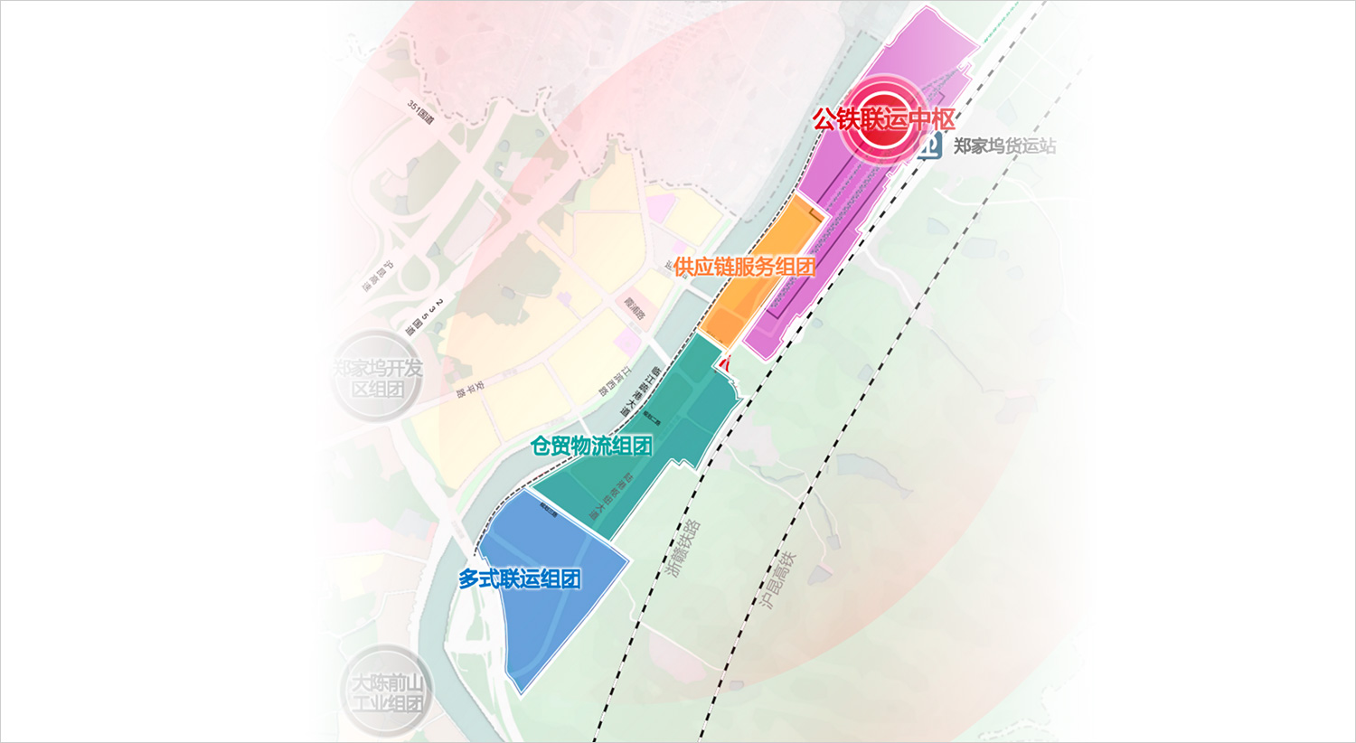 项目聚焦无机非金属品类,重点发展运输、贸易、仓储、服务四大核心业务,规划构建“一核引领(公铁联运中枢)、组团协同(供应链服务组团、仓贸物流组团、多式联运组团)、圈层辐射(核心港区-临港圈层-带动圈层)”的空间功能布局。