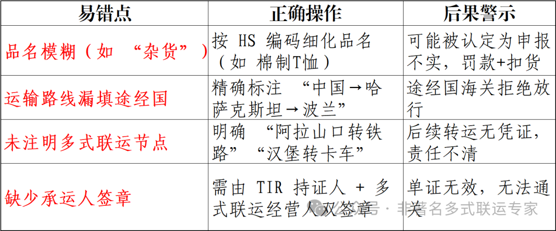 重点:CMA 单证的 “运输路线” 需与 TIR 证完全一致,否则会被拦截!