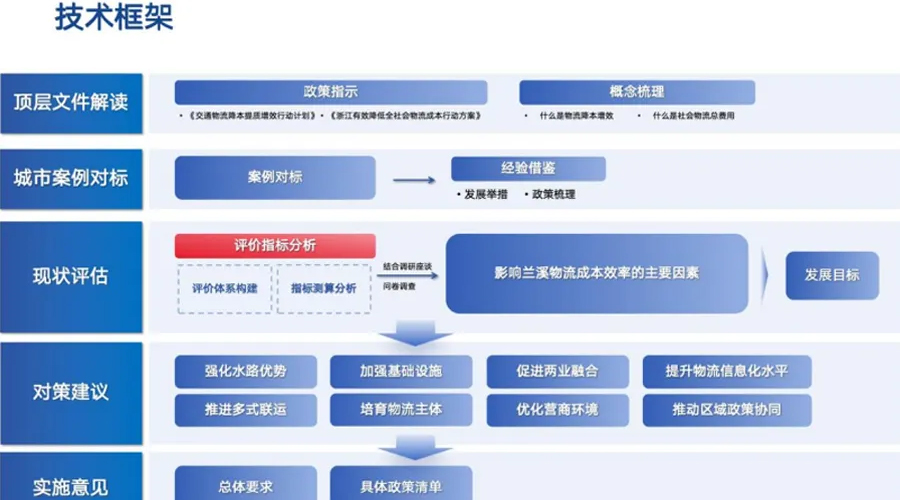在物流业支撑国民经济发展的关键时期,国家与省级层面已明确将降低全社会物流成本作为提升经济运行效率的重要抓手。2024年,国家出台《交通物流降本提质增效行动计划》。2025年,浙江省跟进推出《浙江省有效降低全社会物流成本行动方案》,要求各地精准施策。开展《兰溪现代物流业降本增效策略研究》项目,是兰溪实现老工业基地振兴的破题之钥。通过系统性研究物流业降本增效的内涵和指标体系构成,对兰溪物流成本、物流效率进行全面评价分析,可为加速兰溪物流降本、增效、提质,重构物流竞争优势提供科学决策支撑。